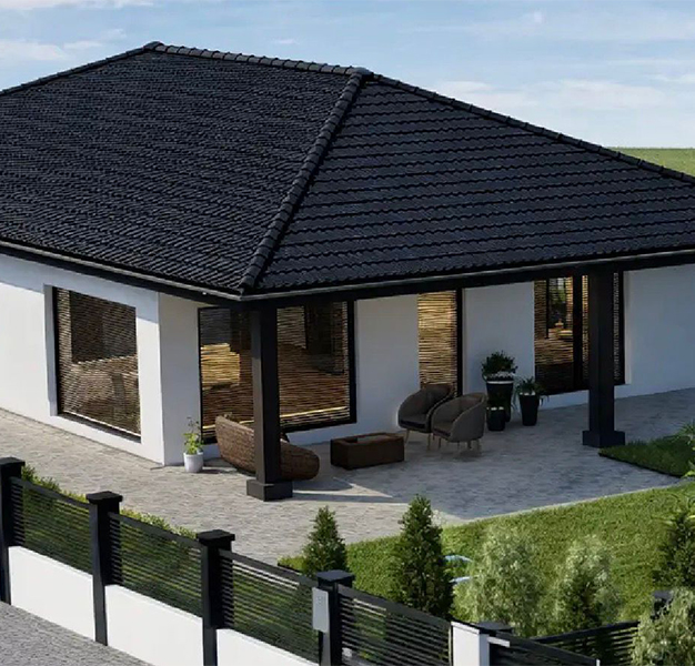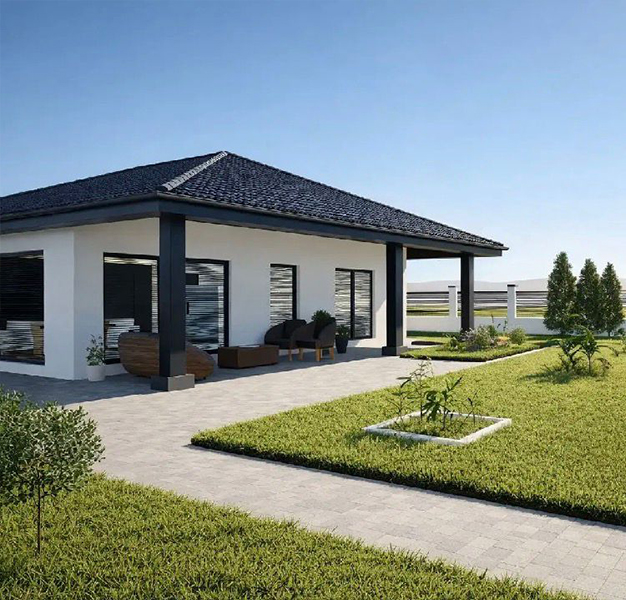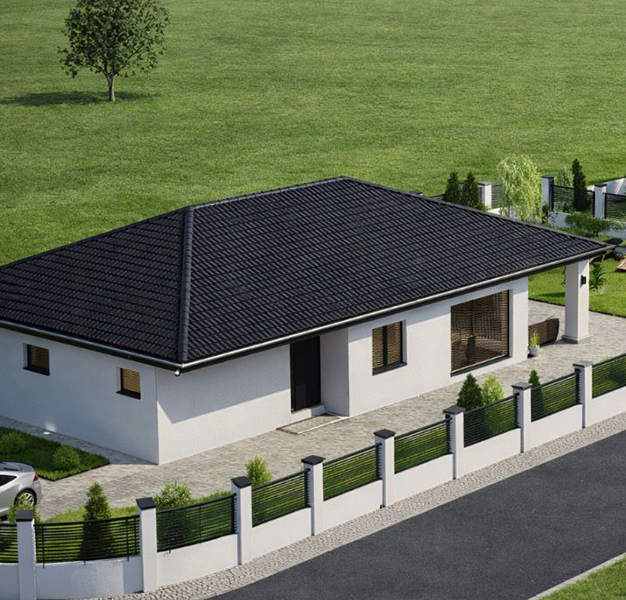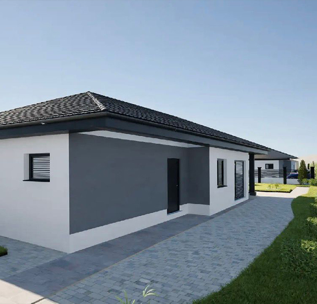 Připravili jsme si pro Vás rodinný dům s dispozicí 4+KK, ve kterém se nachází tři ložnicové pokoje, hlavní a noční koupelna, technická místnost, a prostorný obývací pokoj spojený s kuchyňským koutem. Celý RD má k dispozici 127,3m2 obytné plochy a 110m2 pochozí plochy, kterou lze využít jako půdu. Díky použitému obvodovému zdivu POROTHERM tl. 30cm a vnějšímu zateplení, izolačním trojsklům a tepelnému čerpadlu VAILLANT aroTherm, které je velice účinné, ale tiché je dům navržen jakožto nízkoenergetický, takže Vám ušetří náklady na celkový provoz. V domě se nachází skleněný portál, který zajistí dostatek denního světla pro obývací pokoj. Okolo domu jsou hotové zpevněné plochy vč. terasy a parkovacího stání.